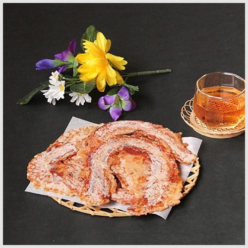 1パイの烏賊に2本しかない「触腕(しょくわん)」を使い、手焼きを生かし1本そのまま素材に素直に焼き上げました。いかの風味が生きた、パリッと軽やかな食感に仕上げげました。