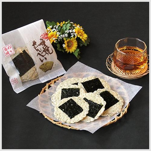 これぞ手焼きの技!これぞ手焼きの技。生のりと板のりの風味と味わいを生かした、まさに磯の風味のえびせんべい。せんべいの香味とのりの香味見事に出来上がった美味しさを味わいください。